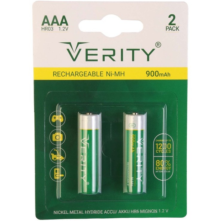باتری دوتایی نیم قلمی شارژی Verity Rechargeable Ni-MH HR03 AAَA 900mAh