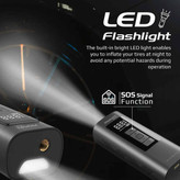 بخش کمپرسور این محصول میتواند با نرخ ۲۵ لیتر بر دقیقه به تنظیم فشار هوا بپردازد. بدین ترتیب فشار هوا لاستیک خودرو ظرف ۷ دقیقه تنظیم میشود. TPMS داخلی اجازه تنظیم در فشار دلخواه را میدهد. کمپرسور با رسیدن به فشار مشخص شده قطع میشود. باتری ۶۰۰۰ میلی آمپر ساعت و پورت USB، امکان استفاده به صورت پاوربانک را فراهم میکند. استفاده به صورت چراغ قوه، LED قدرتمند این محصول به صورت یک چراغ قوه عمل میکند. این دستگاه قادر به تنظیم فشار هوای لاستیک خودرو، دوچرخه، موتور، توپ فوتبال و قایقهای بادی و ... است.