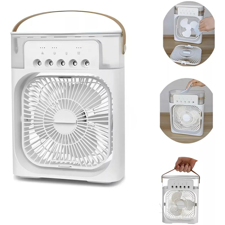 - خنککنندگی تبخیری: این دستگاه با اضافه کردن آب به مخزن خود و اسپری آب به آرامی، هوای خروجی را خنک و مطبوع میکند. مخزن آب دستگاه ظرفیت ۷۰۰ سیسی دارد و میتواند حدود ۴ ساعت عملکرد مداوم داشته باشد.