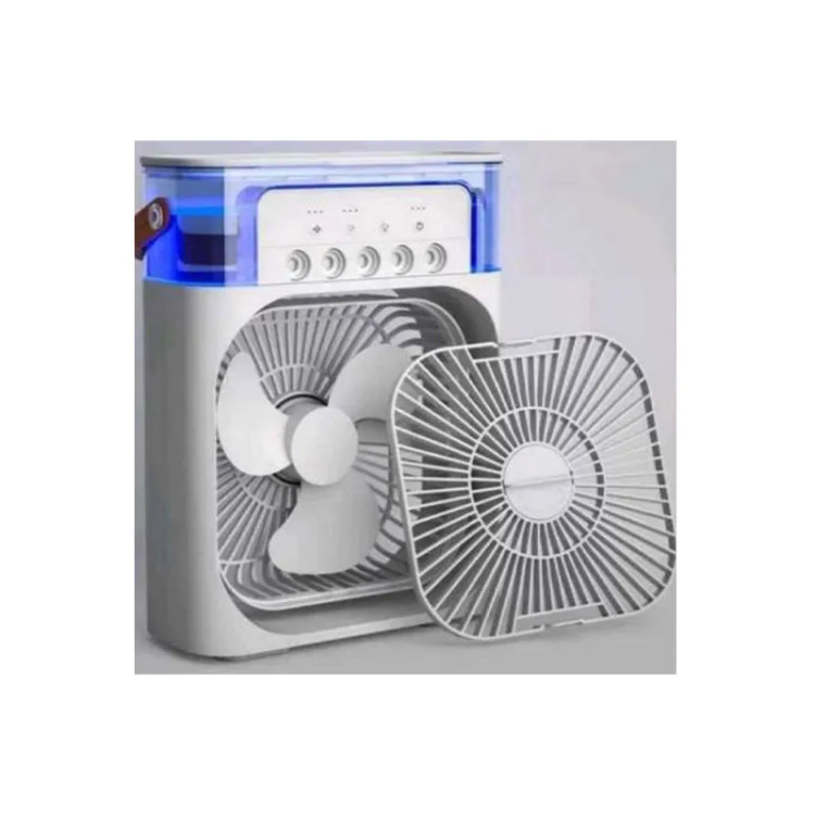 پنکه مهپاش رومیزی Turbo Spray با قابلیت مهپاش ۵ نازل و پنکه قوی، خنککنندگی مطلوبی در فاصله ۲-۳ متری ایجاد میکند. دارای مخزن آب ۷۰۰ سیسی، پد اسانس، و نمایشگر LED با ۸ رنگ است. این دستگاه سبک و قابل حمل، با پاوربانکهای معمول یا خروجی کابل USB قابل استفاده بوده و مناسب برای استفاده شخصی و فضاهای محدود است.