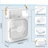 - منبع تغذیه: این پنکه مهپاش با پاوربانکهای معمول (۲ آمپر ۵ ولت) و یا خروجی کابل USB کار میکند و باتری داخلی ندارد. لازم به ذکر است که عملکرد بهینه دستگاه نیازمند آداپتور یا برق ورودی ۲ آمپر است.