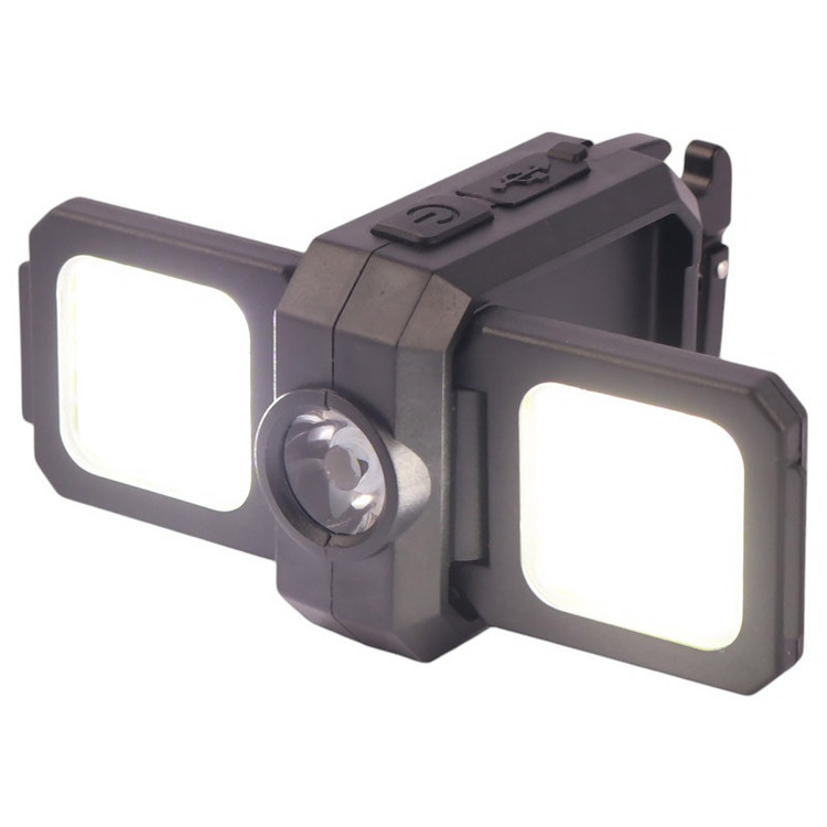 مجهز به دو عدد چراغ COB و یک عدد چراغ LED با نوردهی مهتابی، دارای دو حالت نوردهی قوی و چشمک زن
