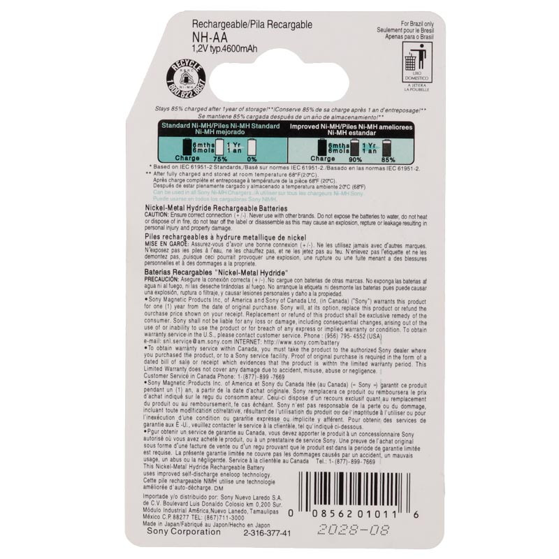 باتری قلمی قابل شارژ سونی مدل Ni-MH با ظرفیت 4600mAh بسته 2 عددی