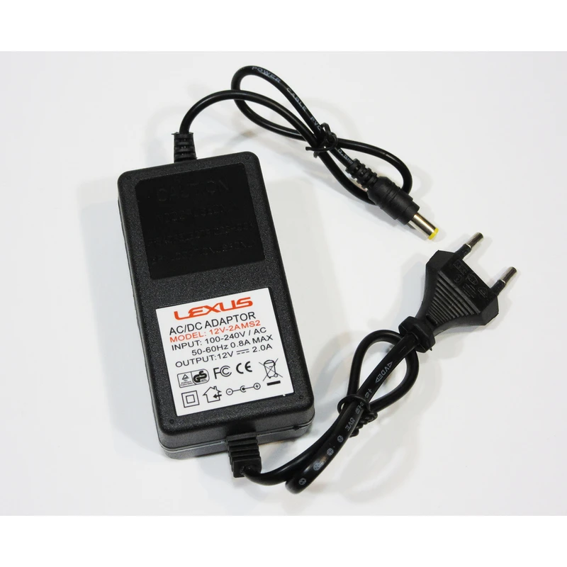 این محصول یک آداپتور برق 220 به 12 ولت از برند لکسوس با حداکثر جریان خروجی اسمی 2 آمپر میباشد. این آداپتور از نوع بین راهی و دارای کابل برق متصل (غیر قابل جداسازی) میباشد. حداکثر جریان خروجی این آداپتور در تست عملی حدود 1.6 آمپر میباشد. طول کابل ورودی و خروجی حدود 25 سانتیمتر است. سر فیش این محصول استاندارد با سایز 5.5 در 2.5 میلیمتر است که در انواع دستگاهها کاربرد دارد.