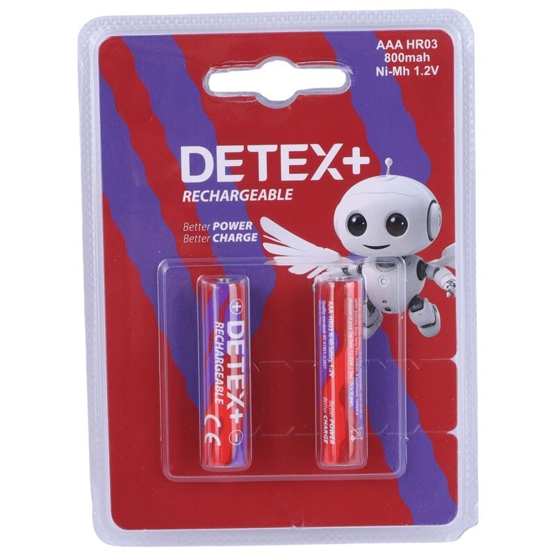 باتری دوتایی نیم قلمی شارژی Detex+ HR03 1.2V AAA 800mAh
