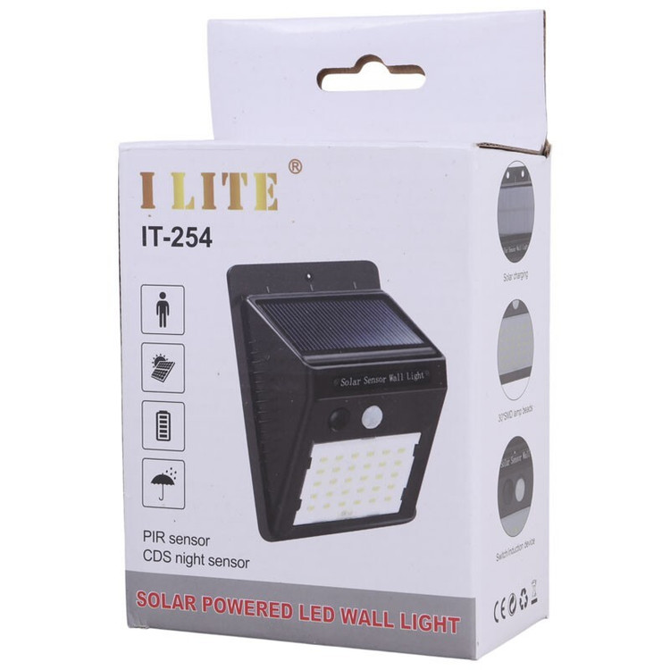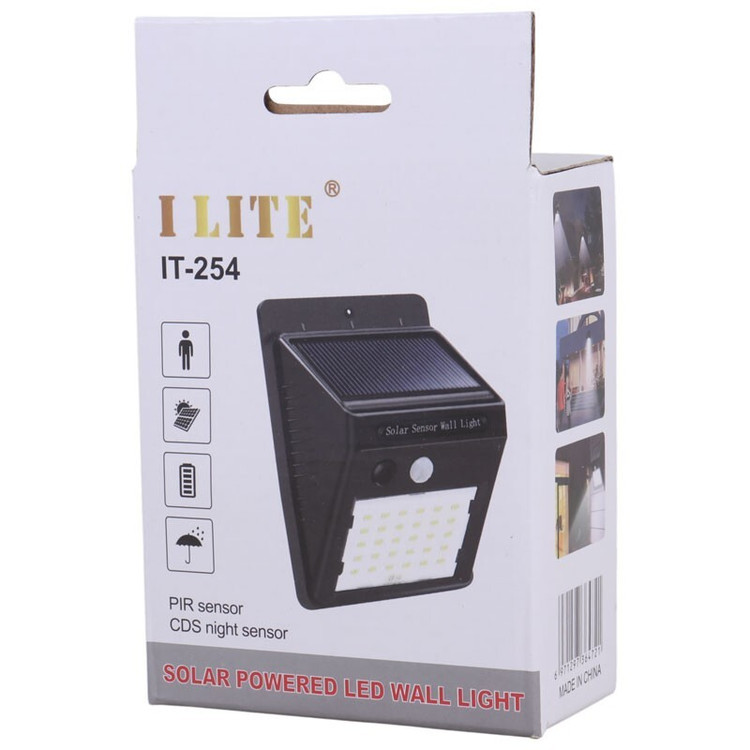 چراغ دیواری سنسوردار با پنل شارژ خورشیدی ILITE مدل IT-254