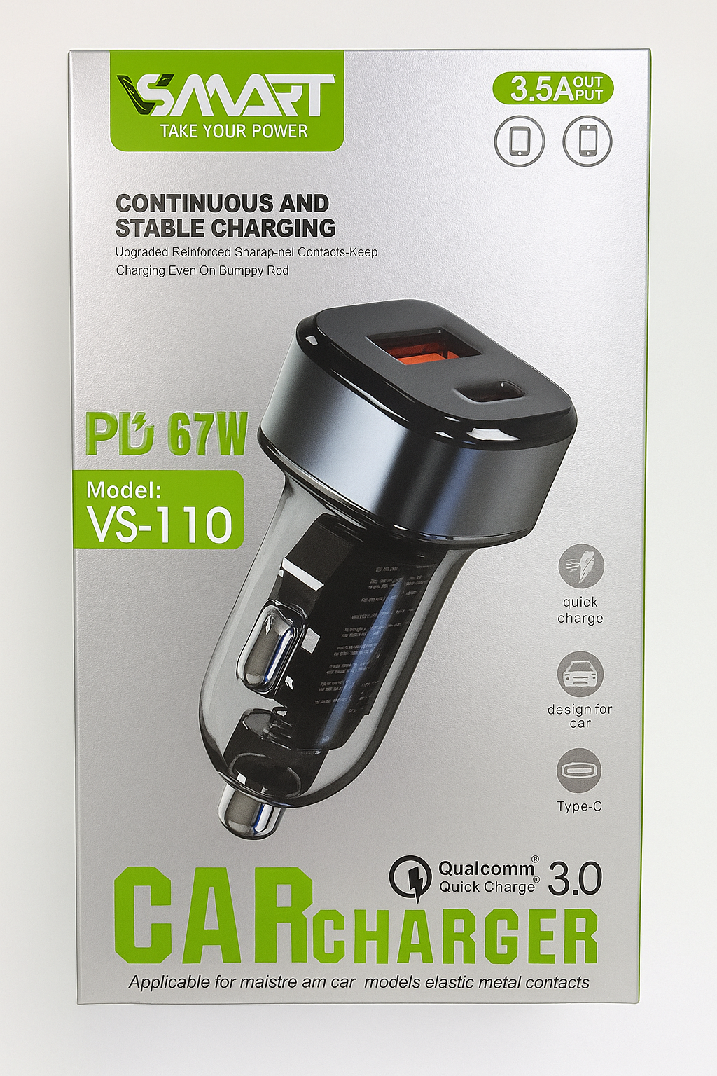 شارژر فندکی وی اسمارت مدل VS-110 یک شارژر قدرتمند و باکیفیت برای خودرو است که امکان شارژ سریع (Fast Charge) را با توان خروجی مجموع 67 وات در اختیار شما قرار میدهد. این محصول با طراحی زیبا و بدنه مقاوم، بهراحتی نیاز شارژ دستگاههای مختلف را برطرف میکند.